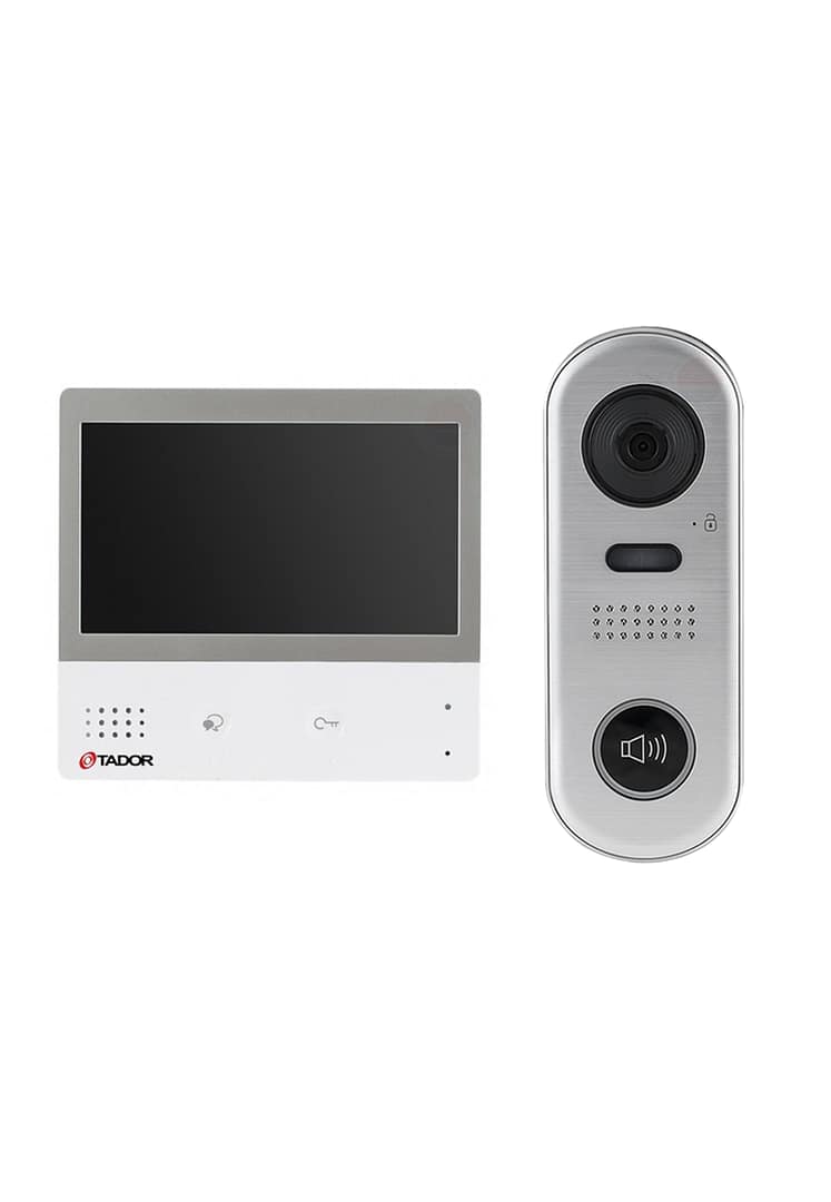 Single-family video kit with Surface / Flush mount panel and Tad-47 hands-free 7” touch monitor.